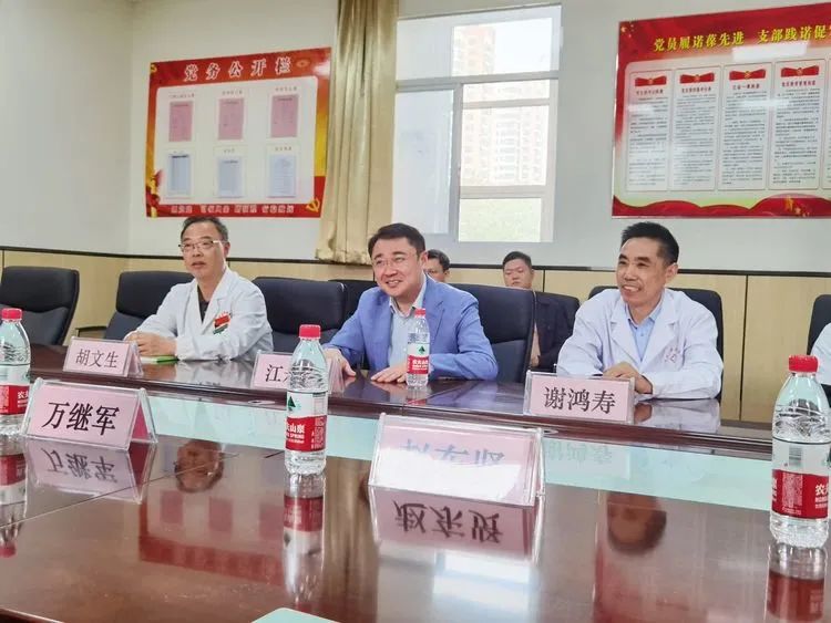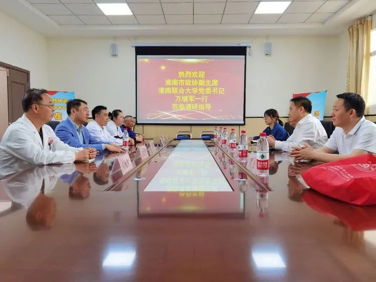 江永强董事长首先向淮南联合大学万书记一行的到来表示热烈的欢迎。董事长向大家介绍了东方医院集团近年来的发展,医院集团坚持以技术和服务同质化为目标,通过“党建工作标准化、行政管理制度化、业务管理垂直化、人事管理一体化”等方面持续规范化管理,实现专家下沉、技术下沉、服务下沉,打破医院间的传统壁垒,大大提升了基层医院医疗服务水平,为优秀人才打通了上升渠道。