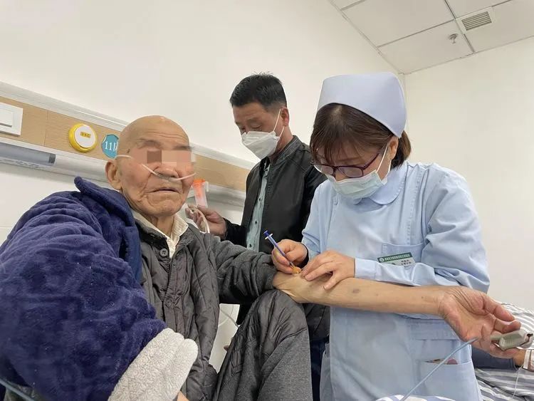 86岁的老人于40余年前开始反复出现咳嗽、咳痰,伴胸闷、气喘,并长期从事井下工作,1987年被确诊为“煤尘肺Ⅰ期”,曾多次住院予以抗感染、止咳平喘等治疗。1周前老人受凉后轻微活动便咳嗽、咳痰,且双下肢水肿,呈进行性加重。刚入院那两天,老爷子情况很不好,精神差,病态面容,随时有呼吸衰竭、急性呼吸窘迫综合征、肺性脑病等病情加重的风险。张进主任除了查房之外,上班下班之前都会到老人病房“打卡”,随时注意病情变化。老人家属见张主任如此热心,不住地感谢,张主任说:“无论多晚,老人如果有任何不舒服,一定要给我打电话!”老人每天都要做雾化治疗,因为年纪大,操作起来不是很顺利。宋玲护士长与护士姐妹们每天早上都会去帮助老人操作雾化机,确保老人得到有效治疗。患者好转后,逢人便夸:“还是新庄孜呼吸科医生、护士好,把我照顾这么好,真是没话讲!”