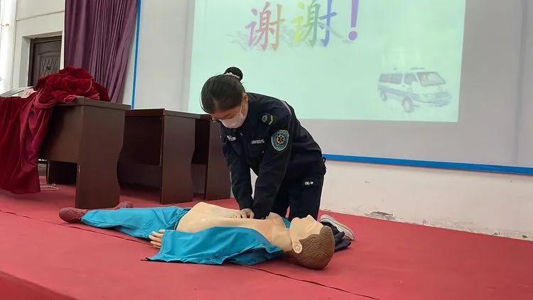 理论知识讲解之后,王继升主任请医院急诊科李蓓蓓护士为大家进行心肺复苏技能的动作分析讲解以及实际操作示范,李蓓蓓同志曾多次代表新庄孜医院参加省、市级急救操作大赛,获得诸多荣誉。心肺复苏术,被称为第一急救术,对心脏病突发、窒息、溺水等各种原因导致的心脏骤停病人抢救很关键。王继升主任介绍说,心肺复苏不光是专业人员的事,它简单易学,普通人只要经过培训,熟练掌握了黄金5分钟抢救的这项技能,凭借自己的一双手,在现场予以及时施救,就可以为挽救更多的生命赢得宝贵的时间,避免很多悲剧的发生。