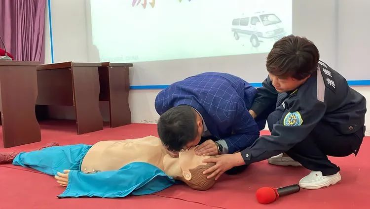 随后,急诊科刘伟护士长邀请几名老师在模拟人身上进行实战演练,并进行详细的要点讲解。怎样判断心跳、呼吸停止,怎样人口呼吸,怎样有效进行心脏按压,频率多少,力度多大……刘伟护士长不厌其烦地进行动作要领指导和纠正,使他们初步掌握这项技能。练习的几位老师纷纷表示:“心肺复苏真是看起来简单,做起来还是有很多小要领的,而且非常需要体力,现在才感觉到急诊医护多辛苦。”