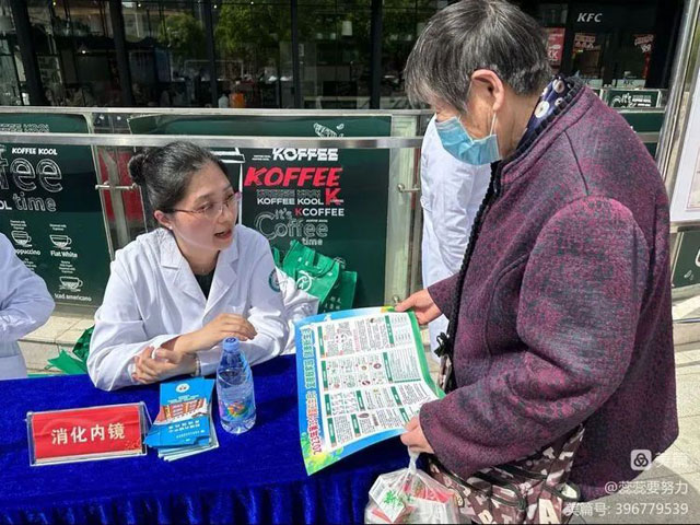 参加现场咨询的专家分别针对各自专业的肿瘤防治进行宣教。消化内镜诊疗中心的医护人员,详细介绍了淮南东方医院集团内镜诊疗中心,针对消化道肿瘤高发病率及死亡率,介绍了无痛内镜诊疗的舒适性、安全性及其意义等,重点详细地介绍了内镜下对消化道肿瘤的早期筛查及治疗优势及价值,并现场发放了相关宣传资料。同时向40名群众免费进行了幽门螺杆菌检测。
