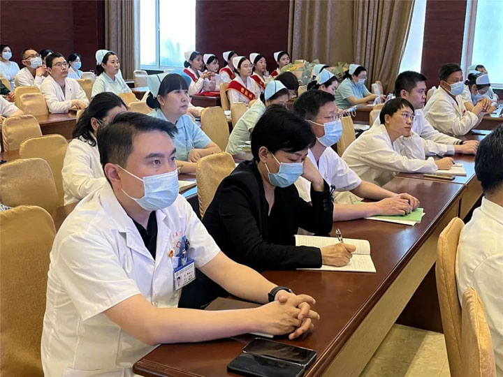朱胜副院长首先向为集团发展付出辛勤努力的全体东方护理人员致以节日的问候和祝贺!随后就总院4月份运营情况进行全面通报。通过数据比对,朱院长指出,4月份总院住院人次同比大幅增加,门诊、住院手术台次稳中有升,次均费用、药比、平均住院日、临床路径等各项指标均日趋向好,危急值管理首次达到100%合格,但在单病种管理、病历归档率方面还有待进一步加强。特别是转院患者,必须符合因技术限制不能给予恰当诊治,以及病人有在院门诊和住院病史的方可准予对口转院,不得跨专业开具转院单。同时,对不良事件及时上报问题,医院将采取鼓励性政策给予奖励,不及时上报的则将给予相应处罚。通报中,朱院长对单项检查表现优秀的科室提出表扬,对不达标科室点名进行了批评,并要求相关科室立刻查漏补缺,尽快整改、完善。朱院长要求各科室在下阶段工作中要积极配合医保做好限制性药物和手术耗材的规范使用,配合医院完成院内资源调整,优化院内诊疗环境,全力以赴做好三甲创建冲刺工作。