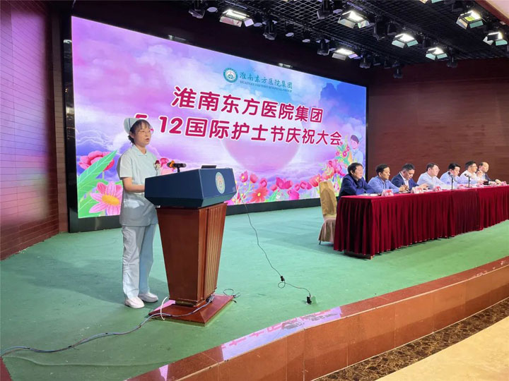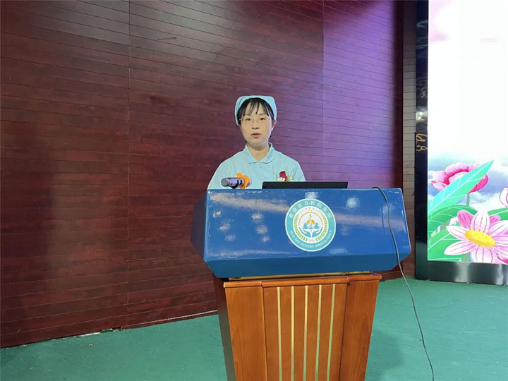 儿科护士长廖红光作为优秀护士代表上台发言。她深情地表示,“选择了护理事业,就选择了奉献!打针、发药、输液,我们在苦中呵护着生命;值班、交班,白天黑夜,我们在繁琐中把握着生命的轮回。可再苦再累,我们却无悔,因为我们深深的热爱着这份神圣的事业,是她让我们知道如何平等、善良、真诚的对待每一个生命,是她让我们明白了“燃烧自己照亮他人”的真理,更是她让我们懂得了真心爱心责任心的真谛!……目前,医院面临三级甲等医院的评定工作,新的挑战也给护理工作提出了更高的要求。但是,面对困难,我们并不害怕,面对挑战,我们也绝不会退缩。我坚信,在董事长、集团党委的坚强领导下,在护理部的正确领导下,我们一定会打造出优质的东方护理品牌,创三甲一定会成功!”