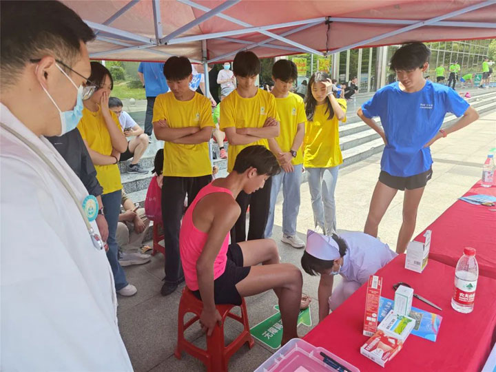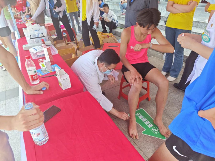 “医生,我家孩子摔了一跤”、“医生,我的脚磨破了……”随着毅行比赛的开始,医务人员们也开始忙碌起来了,大家分工合作,紧张而有序。医疗保障小组现场救治了运动疲劳、血压低、擦伤等人员数十名。