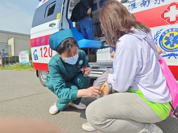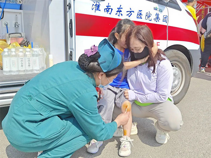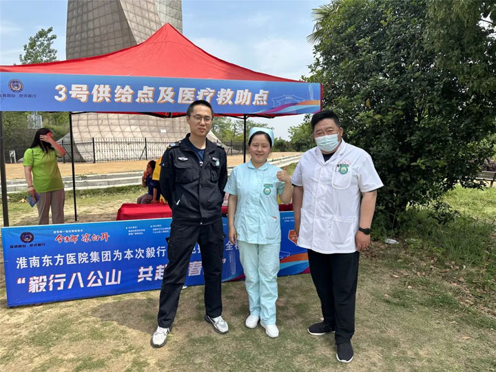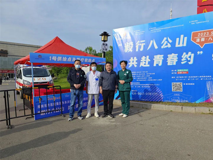 5月13日上午,由淮南市教育体育局、淮南广播电视台主办的2023八公山青春毅行活动正式拉开帷幕,本次毅行大会全程设22.4公里,其中亲子组全程5.2公里,共4000多市民报名参加。淮南东方医院集团作为淮南市重点医疗单位,由总院朱胜副院长领队,派出6辆救护车,36名医护人员,准备了外伤、防暑、脱水、心脑血管、急救等药物,监护仪、除颤仪、呼吸机等急救设备,为此次活动提供全覆盖的医疗服务护航。