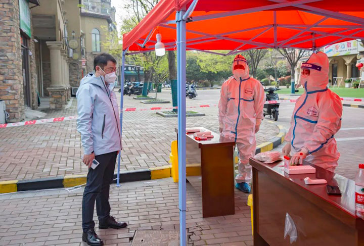 2022年3月27日,疫情在淮南本土出现,淮南东方医院集团正式面临抗疫大考,在江永强董事长的带领下,全集团3600余名员工迅速完成核酸检测并返岗备战防疫工作,一方面保证在院患者的医疗安全,防止院内感染,另一方面抽调360人深入凤台县城、各乡镇进行排查工作。为应对数量激增的核酸检测潮,全集团在27日当天即完成3万3千余例市民的核酸检测工作。在做好一线核酸检测工作的同时,医院集团充分统筹疫情防控和百姓的就医需求,持续提高院感防控能力、发热门诊管控能力和应急物资储备能力,在确保做好院内疫情防控工作的同时,克服一切困难,力保做到患者应收尽收,应治必治!