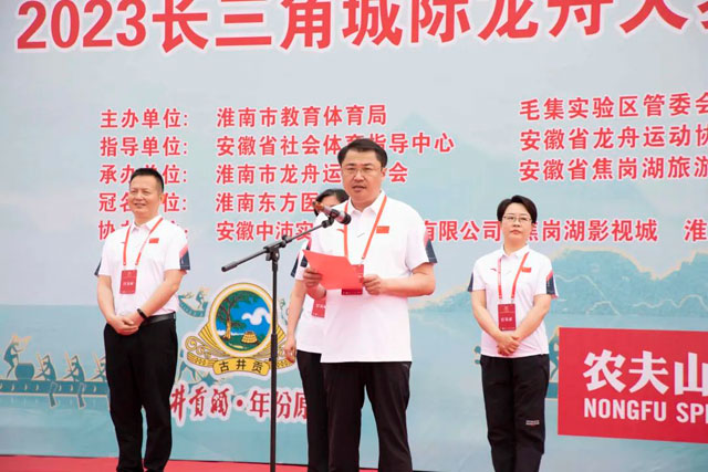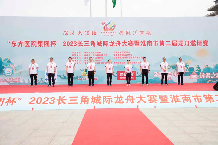 2023年6月3日上午,由淮南市教育体育局、毛集实验区管委会主办,淮南市龙舟运动协会、安徽省焦岗湖旅游发展有限公司承办,淮南东方医院集团冠名的“东方医院集团”杯2023长三角城际龙舟大赛暨淮南市第二届龙舟邀请赛在风景秀丽的焦岗湖景区隆重开幕。