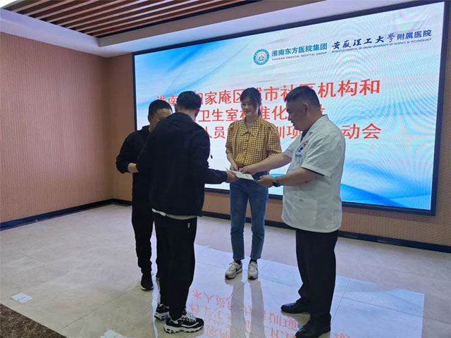 随后授课老师结合自身实践和工作体会进行了深入浅出的讲解教学,本次培训内容涵盖了《肺部结节与临床决策》、《急救技能-心肺复苏》、《甲状腺结节的诊断与处理》、《卒中的识别与处理》、《糖尿病的并发症》、《高危胸痛的识别与处理》、《抗生素的合理使用》、《胃肠镜检查前后注意事项》、《常见传染病的诊疗防控》、《膝关节半月板损伤的诊疗》、《医疗纠纷预防和处理条例解读》等内容。在培训结束后,区卫健委党组成员、副主任李亚然与东方医院集团董事、总医院副院长朱胜为前来参加培训的48名医疗卫生工作人员颁发结业证书。
