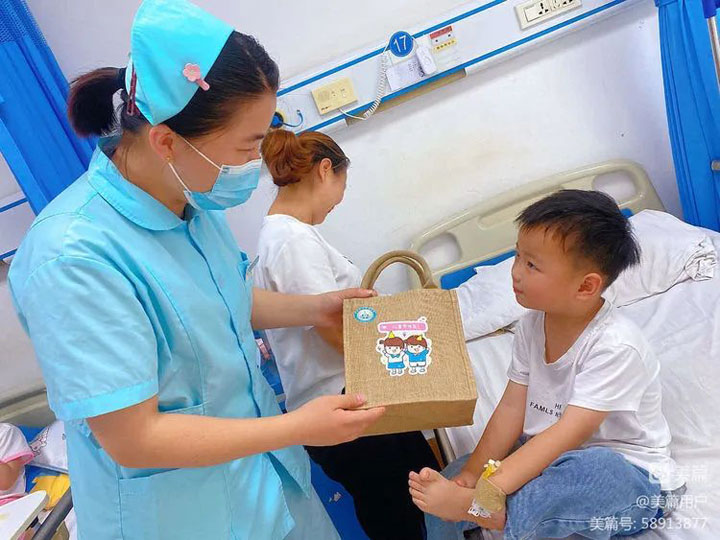 为了感谢医护人员的精心照护,病房里的小宝宝也给叔叔,阿姨们准备了礼物。简单的小礼物,表达了患儿的真心祝福,拉近了医患之间的距离,无声的传递着爱的声音。