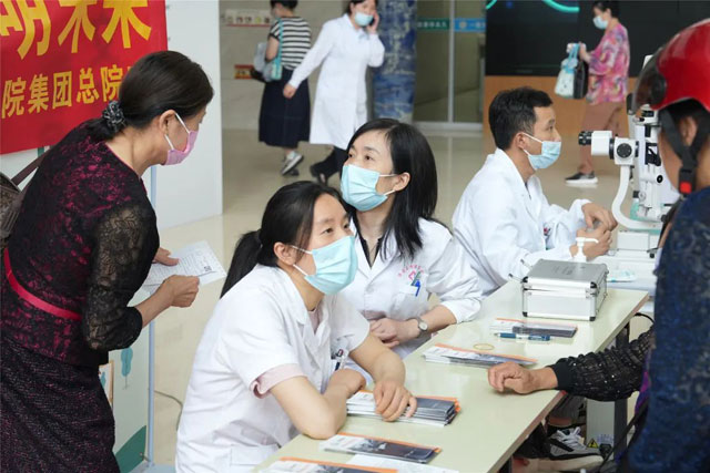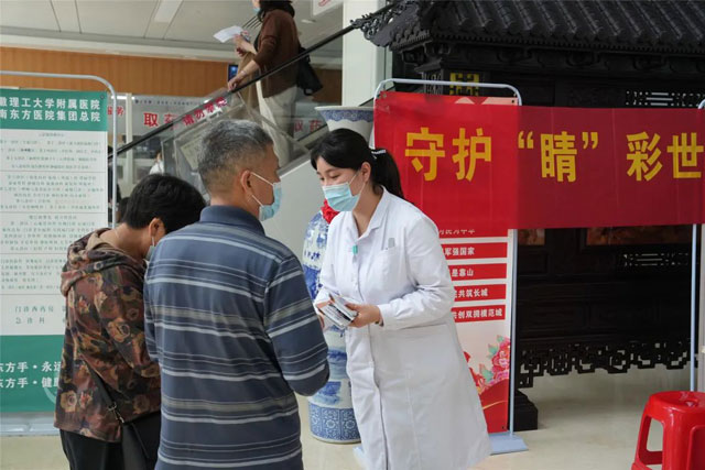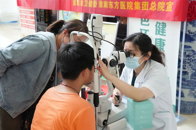为进一步普及科学用眼知识,提高全民的视力健康水平,在第28个“全国爱眼日”来临之际,淮南东方医院集团眼科医疗中心在总院门诊大厅开展“守护‘睛’彩世界,点亮‘光’明未来”义诊宣传活动。
