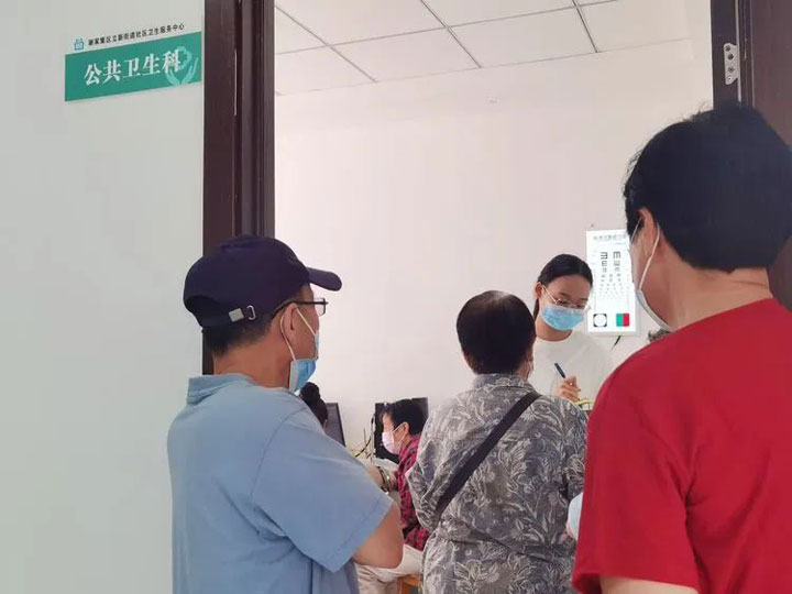 立新街道社区卫生服务中心公共卫生科里,预约体检的老人排着整齐的队伍。测视力、登记信息、测血压、人脸识别、开检查单。夏至时节,来自新民社区、新乐社区、新建社区、长淮社区和路东社区的3000余名重点人群(65岁以上老年人、高血压、糖尿病等)将陆续完成本年度健康体检。