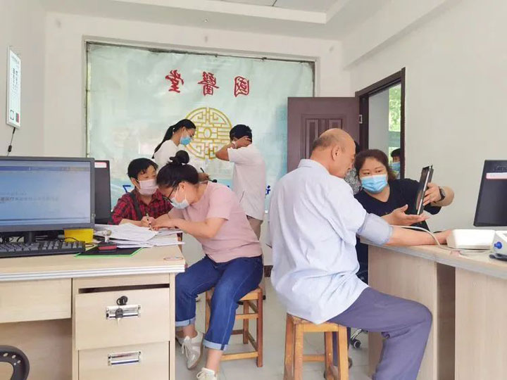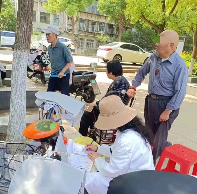 目前,广济医院下辖四家社区卫生服务中心,包括:立新街道、蔡家岗街道、谢家集街道、谢三村街道社区卫生服务中心,共服务人口67325人,其中重点人群12926人。考虑到参加体检的居民多以高龄老人为主,其中不乏糖尿病、高血压等基础病的老人。为了能让老人早点完成健康体检,早点吃上热乎乎的早饭。四大街道社区卫生服务中心的工作人员,不约而同地选择提前到岗。谢三村街道社区卫生服务中心的代梅书记说:“为了更好地落实两卡制',提高居民健康体检、健康随访等参与率。我们的同事骑着电动车,带着简易桌椅,在社区的广场支起摊子,健康随访、用药咨询、健康教育一起。遇到腿脚不便的老人,我们就上门服务。两卡制'需要居民在线进行人脸识别,同事们到社区以后,就用自己手机建热点,用自己的手机流量联网为居民进行操作。公卫工作不是一朝一夕的,但是我们相信,每一分努力都不会白费。我们公卫人的一小步,就是居民健康的一大步。”