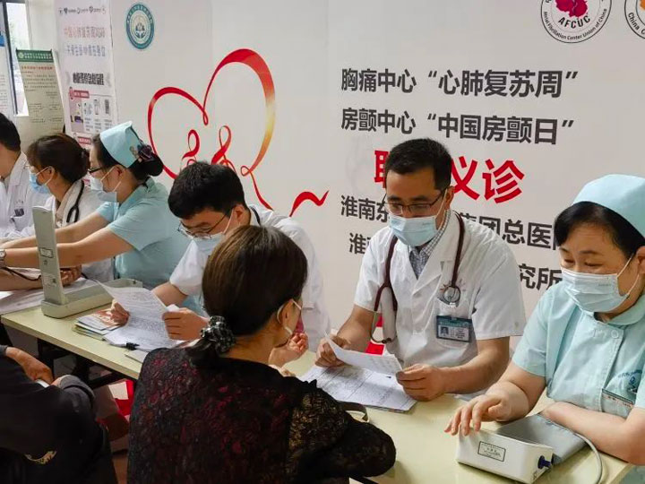 参加本次活动的有淮南东方医院集团总医院心血管医疗中心李枫院长、心内科汪蛟龙、叶平、金希华、宁伟主任,急诊科姚家忠主任,熊堂鹏主治医师,苗莉、程慧主管护师、邓雪护师。