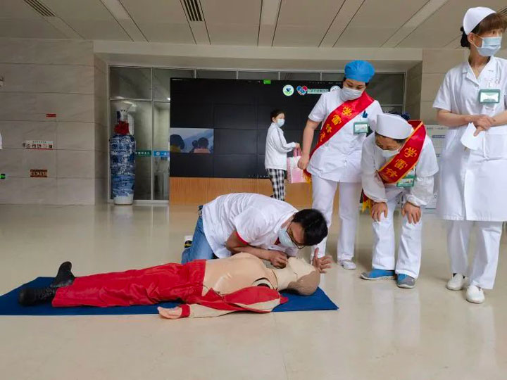 在本次活动中,进行联合会诊时,急诊科姚家忠主任亲自进行了心肺复苏操作演练,向大家介绍心肺复苏的操作要点,让公众更加了解心肺复苏技能的重要性。