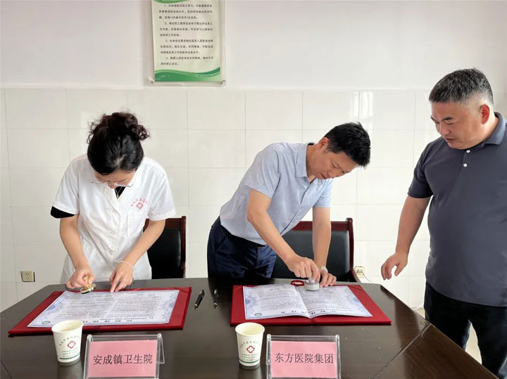 安成镇卫生院长期承担区域居民的医疗康复、预防保健以及政府交办的各项公益卫生健康服务。淮南东方医院集团总院作为安徽省较大民营医院集团——淮南东方医院集团的旗舰医院,是一所集医、教、研、防、保为一体,设备先进、技术精湛、口碑优良的三级综合医院。与安成镇卫生院医联体合作的建立,旨在进一步推动我市分级诊疗、双向转诊落实到位,着力缓解群众看病难、看病贵问题,不断提升双方医疗服务水平和医院美誉度,满足不同层次患者的就医需求。
