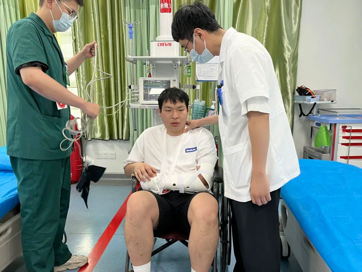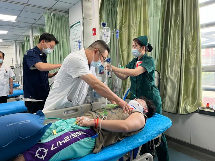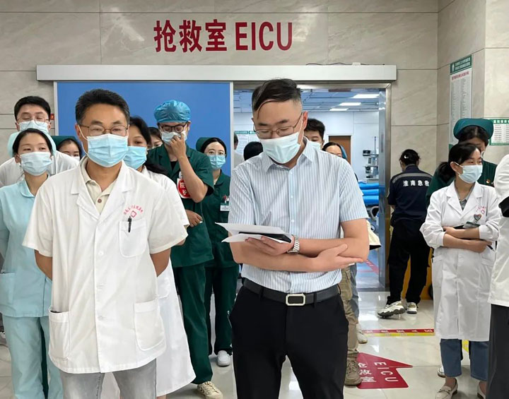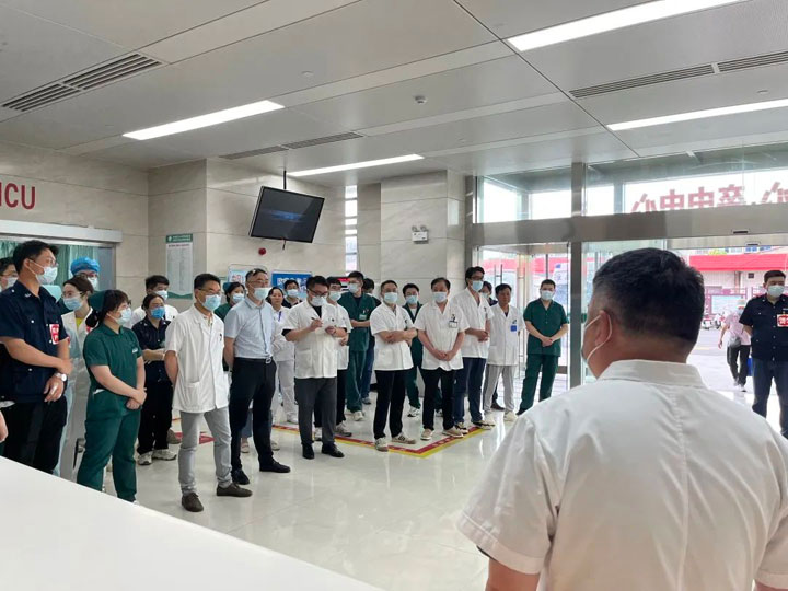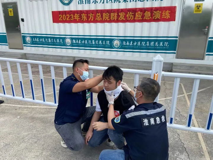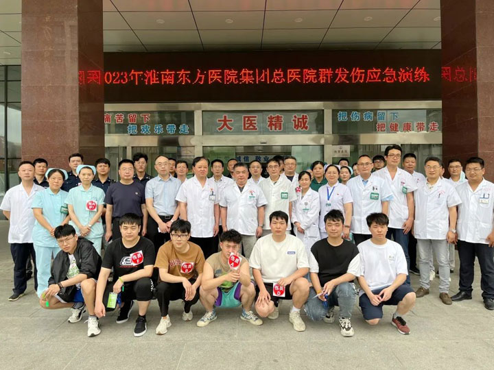 为了加强医护人员应对重大突发事件的快速反应能力,检验医护人员对《淮南东方总医院突发事件抢救应急预案》、《淮南东方总医院重大突发事件应急医疗救援预案》的工作程序及技术要求的掌握程度;为了保障区域内发生重大突发事件后的医疗救援质量;为了保证在紧急情况下,能做到调度有方,出诊及时,救治有力,措施得当。6月24日,淮南东方医院集团总医院在急诊科举办大型“成批伤员救治院内外联合应急演练”。