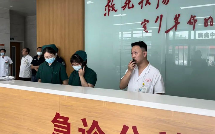 下午3时,朱院长宣布演练正式开始。“叮铃铃,叮铃铃……”急诊科接到市120急救指挥中心的指派出诊交通事故现场,120两分钟内快速出车,出诊医生向指挥中心汇报伤员8人,在朱院长的指挥下,各应急小组陆续向急诊科聚集,普外、骨科、脑外科、眼科等临床科室,调配人员以最快的速度来到急诊科做好接诊准备,并电话通知血站做好血液用品的保障。演练过程中,医务人员分别从接诊出车、院前急救、现场验伤、院内急救,到突发事件报告、启动应急预案、开通绿色通道,再到紧急气管插管、院内会诊、多学科协作抢救等环节进行了规范的演练。整个演练过程内容丰富、井然有序,医务人员表现出了良好的急救素养,他们沉着冷静,技能操作严谨规范,救护程序流畅迅速,急救工作有条不紊。
