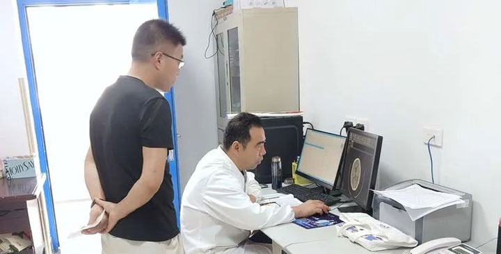 有些患者对李郢孜医院影像科的电子胶片服务存有疑问,觉得没有实体胶片拿在手里实在,张玉超院长都会耐心的为患者解释电子胶片的好处,不用再繁杂的拎着很多袋胶片四处跑,仅用手机便能便携查看检查报告及片子详情,既方便又环保。