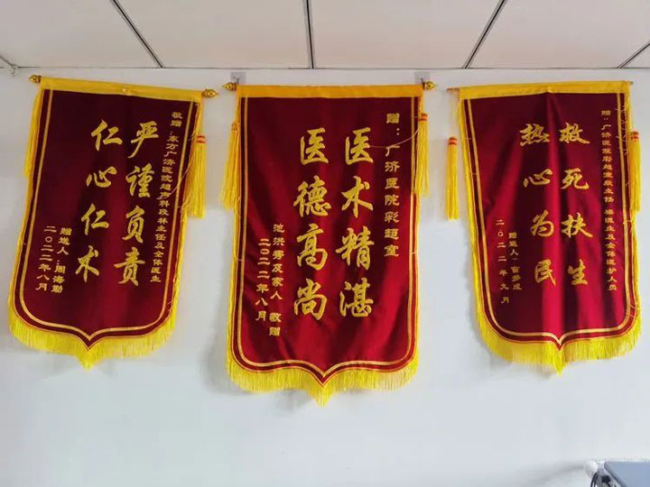 恢复健康后,老人十分感谢帮助过他的医护人员,还特地来超声科为段林主任送上锦旗。
