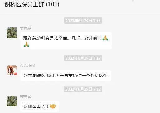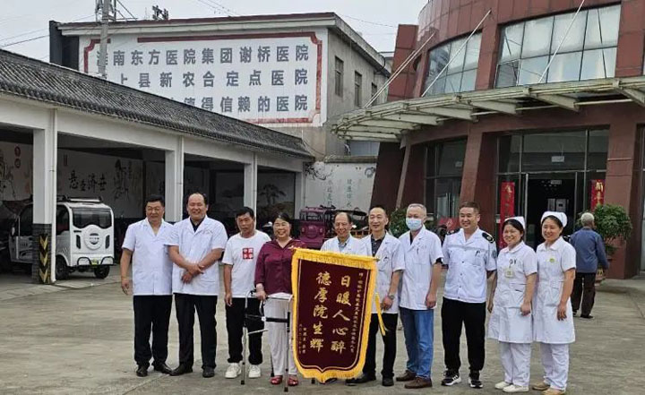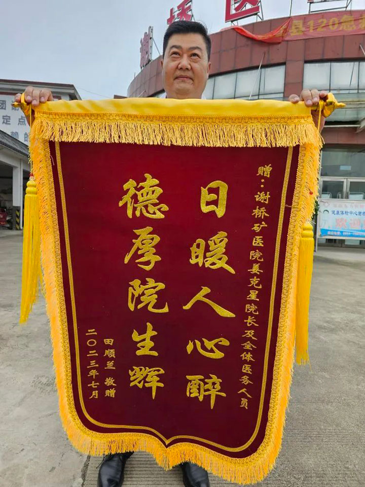 2023年7月3日上午,外科病房的田某给谢桥医院捧来了一份鲜红的锦旗。