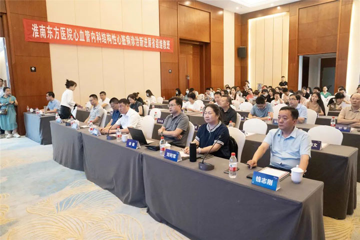 淮南东方医院集团董事长、普外科著名专家江永强教授向前来传经送宝的各位专家表示诚挚的感谢,并致开幕词。他指出,近年来,心血管内科从传统介入手术到结构性心脏病的诊疗取得显著发展。相信在李枫院长和汪蛟龙主任的带领下,东方心内科团队乘着职级改革的东风,秉承“内科治疗外科化”,将会不断做大做强。以“结构性心脏病诊治”为主题的继教班开展的非常及时,预祝本次活动圆满成功。希望通过这一场学术盛宴,为淮南心内科与省内知名专家搭建思想交流、学术探讨的宝贵平台。