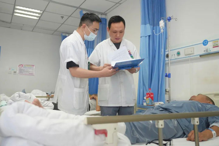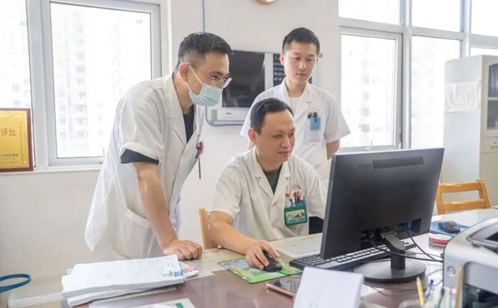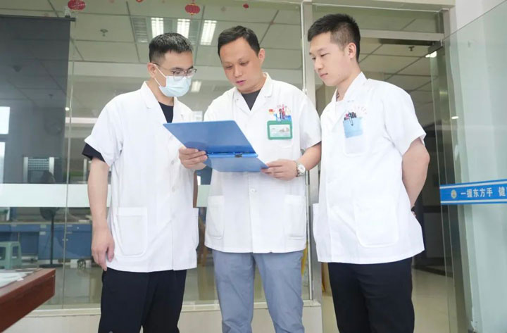 俗话说:“强将手下无弱兵。”就技术钻研而言,东方总院上下都有一股敢为人先、苦练到底的精神。“那个时候,我和同事们对新技术都有天然的倾慕和好奇,再加上江主任的砥砺、打气,我们必须向前冲不能有丝毫退缩,不仅要下功夫学,还要学得好、学得快,力争尽快上手……所以每个人既感觉重任在肩、无比光荣,又深知压力不小、充满挑战……”2016年,江友辉跟随普外科副主任张军着力学习ERCP技术,2017年作为未来技术骨干又赴安徽省立医院进修胆胰外科ERCP专业,由此,技术突飞猛进。