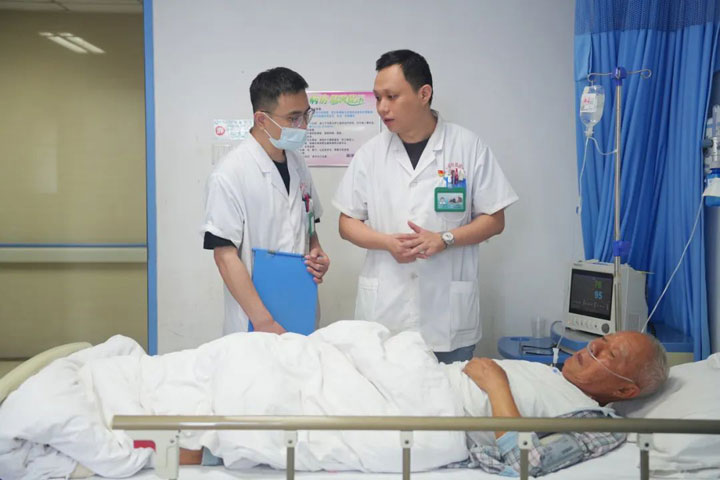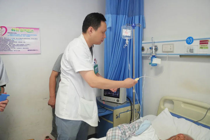 倪老太太已是83岁高龄,半年来上腹部疼痛不已伴有眼黄症状,一周前症状加重伴呕吐、发烧,在某医院检查时,CT平扫发现肝门胆管结石伴肝内胆管扩张、胆囊结石、慢性胆囊炎、胆囊癌待排查。来东方总院就医后,江友辉经过一番精心排查问诊,诊断为:梗阻性黄疸、胆囊恶性肿瘤、肝内胆管结石伴胆管炎合并肝功能损害。他与团队制定了详尽的手术方案,并亲自主刀,为患者施行了“ERCP+胆道支架植入术”。江友辉精心操作,团队密切配合,手术进展顺利。不久,倪老太太苏醒,慢慢可以进食和下床踱步。“我这把老骨头,是江大夫救回来的,我打心眼里谢谢他……”家人们也是心里一块石头落了地,“原本就怕老人家年龄太大了、基础病又多,手术挺不过去,多亏江大夫技术好!事实证明,找到这样的专家医生,病人和家属放心……”