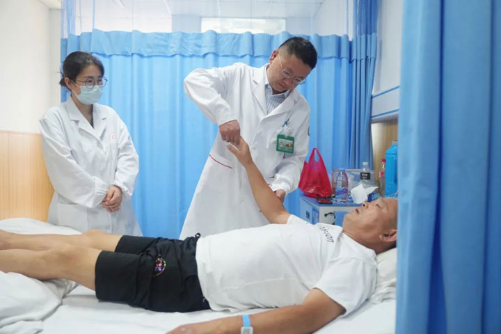 张大爷今年已经86岁,是东方总院的老病号了,之前也因为脑梗住进东方总院神经内科,朱院长表示平常和张大爷的子女也保持着联系,时时关注着张大爷的病情。前段时间,张大爷突发急性梗塞,一时间不能说话,甚至还出现了偏瘫的症状,张大爷被送到医院时还出现了肺部感染,病情比较严重。他的家人发现后立马联系朱院长,把他送到了淮南东方医院总院治疗,因为送医比较及时,来到医院,通过神经内科、放射科、检验科等多学科相互配合,通力协作,争分夺秒,全力以赴,为张大爷的急性脑梗的治疗赢得了宝贵时间。各项检查结果出来以后,朱院长立即为张大爷进行溶栓治疗,为他打通了“生命之路”。