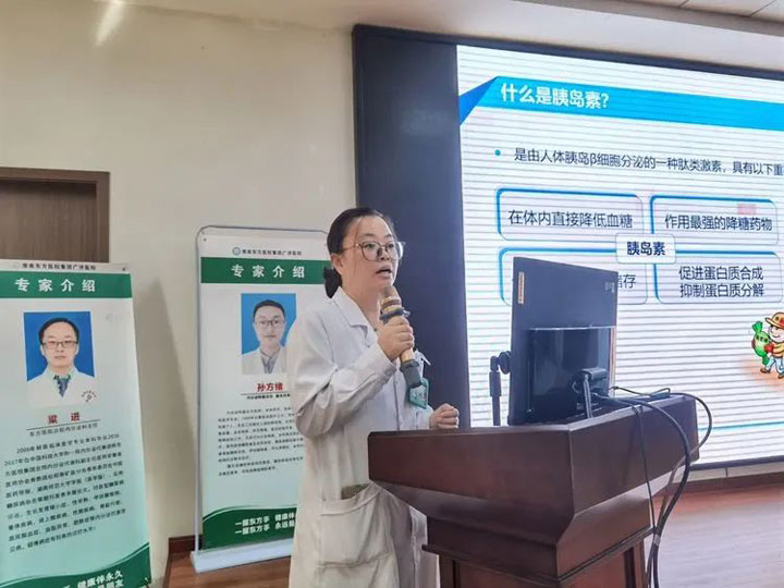 “胰岛素是什么?为什么要补充胰岛素?”广济医院内分泌科主任宋春侠,带领参会人员学习了《不可忽视的有效降糖武器——胰岛素》,帮助更多的患者更好了解到胰岛素治疗糖尿病的益处,通过解析胰岛素治疗的常见误区,为糖尿病人群的规范治疗,尤其科学使用胰岛素进行了专业的讲解。