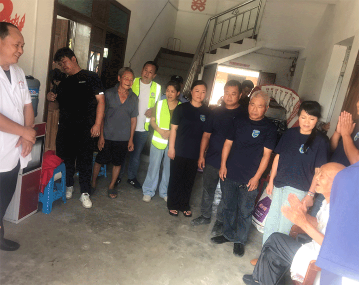 2023年8月1日下午15点,谢桥医院的姜克星院长率内科许文进院长、中医疼痛科主任吴远山、血透室张斌主任及退伍老兵姜允乐一行首先来到抗美援朝老复原军人陈道明家中,年已过九旬的陈老精神矍铄, 他见到大家热情地说:“感谢党和大家对退役老兵的深切关怀。”