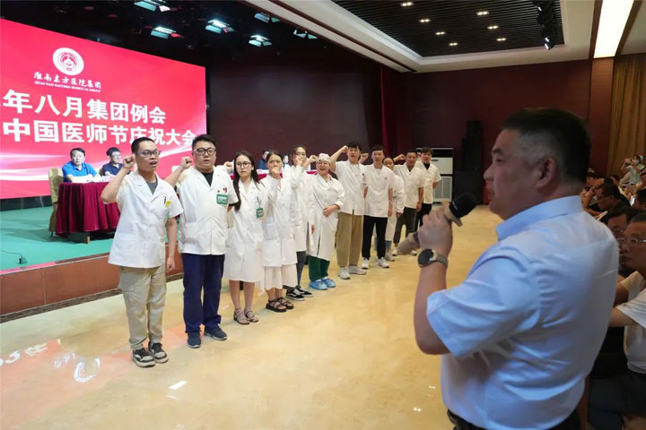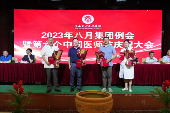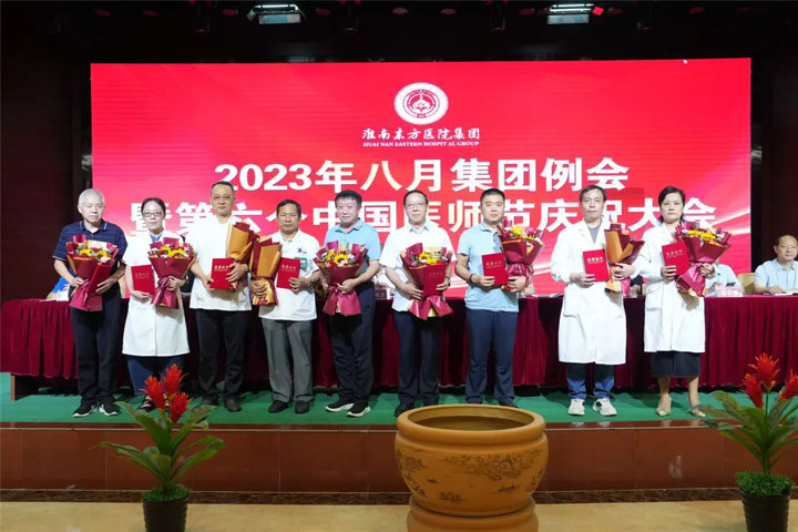 “勇担健康使命,铸就时代新功”。为庆祝第六个中国医师节,布局并调整集团下半年发展规划,8月18日下午,东方医院集团在总院多功能厅召开2023年八月集团例会暨第六个中国医师节庆祝大会。大会现场为“从医三十年”的老一辈医学专家颁发荣誉证书,并带领新晋医师宣誓《中国医师宣言》,同时就集团中心工作进行总结和部署。江永强董事长发表讲话。医院集团领导层、各医院领导班子、医疗中心院长、总院各科室主任、护士长及集团部分中层干部参加了会议。