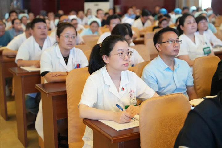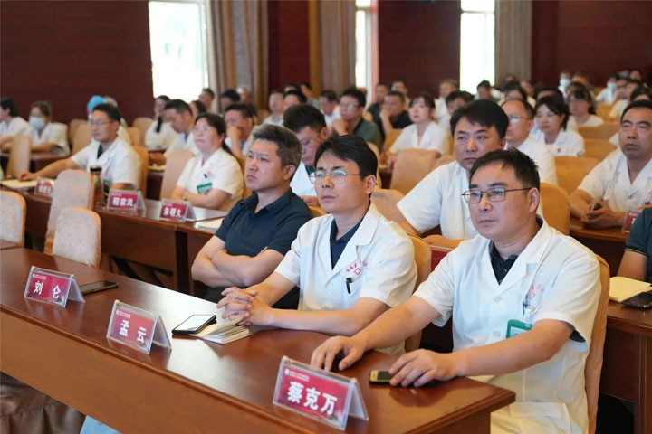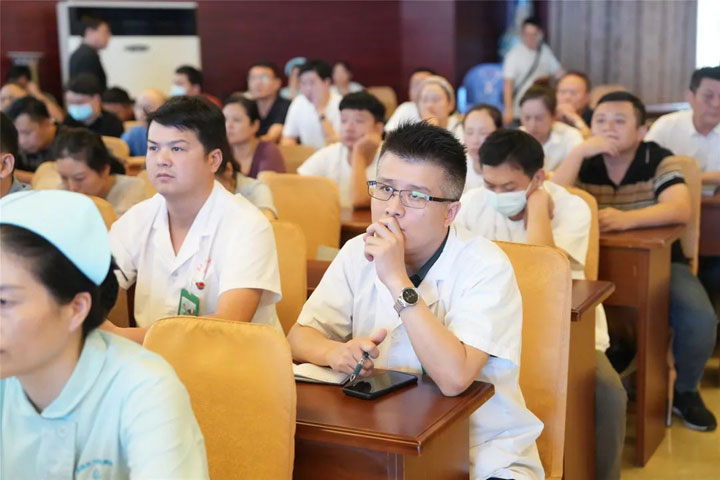 朱胜副院长首先代表医院集团党委、董事会向奋战在医疗一线的医师人员表达了诚挚的感谢和祝福!随后围绕集团和总医院7月份整体运营情况进行了简明扼要地通报。朱院长指出,7月份集团和总院各项数据运行平稳,各类指标同比、环比总体向好,但个别科室在药比、耗材比和次均费用等方面数值仍高于平均水平,必须加强管理,尽快将数据降至合理范围。特别是靶向药物、门诊慢特病用药,以及部分特殊药物的使用,一定要按照医保限制性用药目录实施严格管控。同时,要在医保政策下进一步发挥和提升总院门急诊大楼服务功能,有针对性地做好各类参保人员的诊疗和服务。在反馈医疗质量与安全单项检查情况时,朱胜院长再次强调,病历质量的好坏是一个医院、科室整体医疗水平最直观的呈现,必须做到专业、规范和精准。他要求所有临床科室病案质控人员都要以高度负责的态度在病案管理各个环节严格把关,确保病历书写无漏项、缺项。反馈中,朱院长现场通过典型案例分析,明确指出各科室在服务流程中存在的突出问题,并要求涉及科室要持续强化服务意识,主动加强医患沟通,杜绝工作疏漏。今后,非门诊工作期间患者就诊由急诊科负责首诊接待,需临床科室会诊时,由科室当班医生到急诊科进行会诊,不允许出现患者带病寻找就诊科室的情况。若现场无法处理的,则由会诊医生引导至科室做进一步检查治疗。急需住院的,优先开通绿色通道收住病区后再补办住院手续,尽可能缩短病人就诊流程,改善患者就医体验。同时,进一步强化窗口和非窗口工作人员管理,严禁出现上班玩游戏、网购等现象。一经发现,将给予严肃处理。在下阶段工作安排中,朱院长要求所有医务人员要全力做好在三甲资料的充实工作,严格落实十八项核心制度及各项诊疗规范,高度重视和做好“三合理”相关工作,规范医疗,确保医疗安全、医院安全。