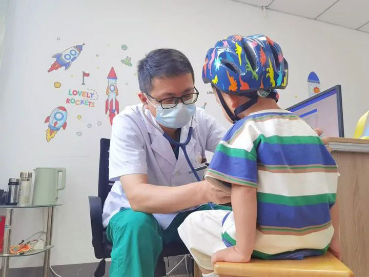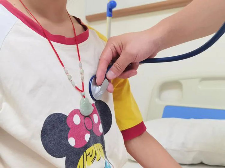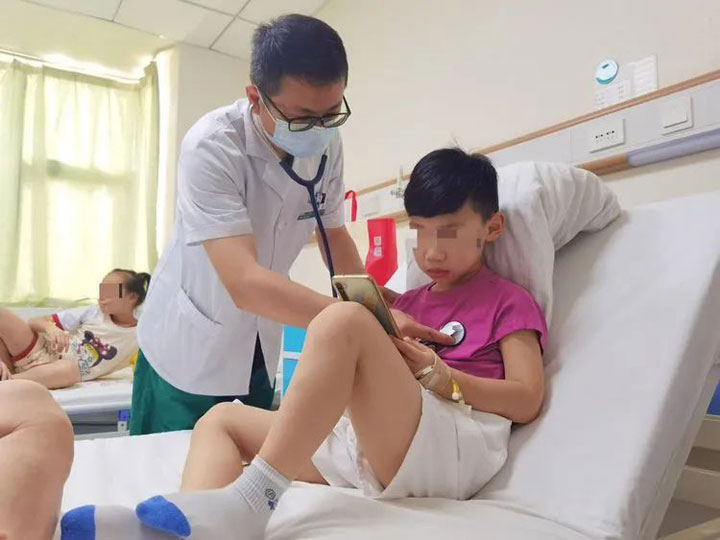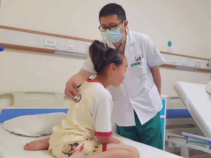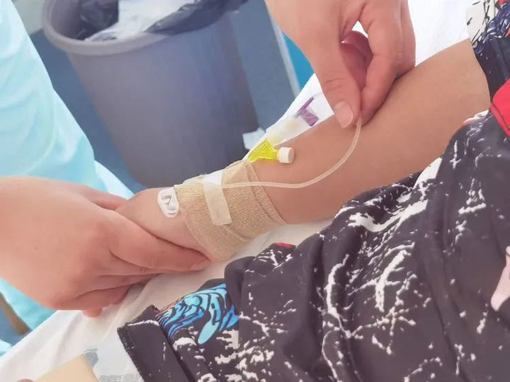 该患儿胸部的CT平扫示:右肺见多发斑片状密实影,呈树芽状,左肺下叶见少量磨玻璃影,边缘模糊。“最近这一类肺炎最近比较多见,多见于年长儿,体征轻症状重,发热持续时间长,咳嗽剧烈,治疗的时间通常比较长,孩子恢复得慢。单纯的病毒或者细菌性肺炎可能孩子一周左右就能病愈,肺炎支原体肺炎的孩子可能需要一到两周,有的甚至更久。”李亚辉主任介绍说:“儿科是一个特殊的科室,患儿来就诊明确病因后,还要根据孩子的年龄、体重等计算合理的用药剂量,保证孩子安全合理用药。”李主任接着说,这一类肺炎在治疗中,病灶吸收得比较慢,因此在整体的治疗中,要随时关注患儿的病情变化,及时处理,也要和家属做好解释沟通,请家长做好配合。儿科医生和护士面对的是一群特殊的群体,不仅要会看病也要会哄孩子。有时候,孩子的病情变化比较快,需要医生和护士在治疗中更认真地观察。小儿科的静脉输液难度众所周知,在张静静护士长的带领下,广济儿科的护理团队不断提升自己的操作技能,凭借着过人的操作技能、满满亲和力赢得了越来越多患儿和家属的肯定。