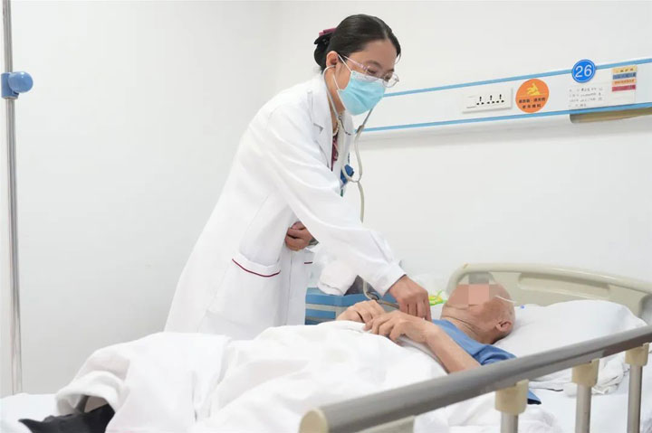 面对患者,不仅要有细心,也要有敏锐的观察力,及时发现症结所在、给予治疗……”这是韩瑞常常提醒年轻同事的话。一位家住凤台县、九十多岁的老爷子出现恶心呕吐、腹泻,同时茶饭不思、躁动不安,还咳嗽、有黄粘痰、少尿症状,略微估算日小便量仅为300毫升。家人慌乱不已,赶紧送来就医。当时,是老人儿子将老人一步步背进住院部。韩瑞通过仔细询问病史,认真全面的查体,发现患者两肺呼吸音粗,闻及干、湿性啰音,结合急查血、尿常规、生化、胸部CT、心电图等检查,发现其肌酐值较高,遂诊断为:肾前性急性肾损伤合并肺部感染。由于患者高龄,病情危重,尽早识别并纠正可逆病因、及时采取干预措施、避免进一步肾损伤就显得尤为重要。韩瑞马上给予患者扩容、维持水电解质和酸碱平衡、适当营养支持等治疗,并使用对肾脏损伤小的抗生素给予抗感染治疗,很快,患者症状便得到减轻,逐渐处于恢复中。不几天,老人家已能下床,独自在住院部走廊行走了。家人感谢万分,握住韩瑞的手,一时不知说什么好。