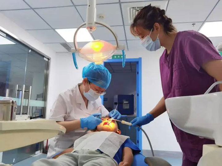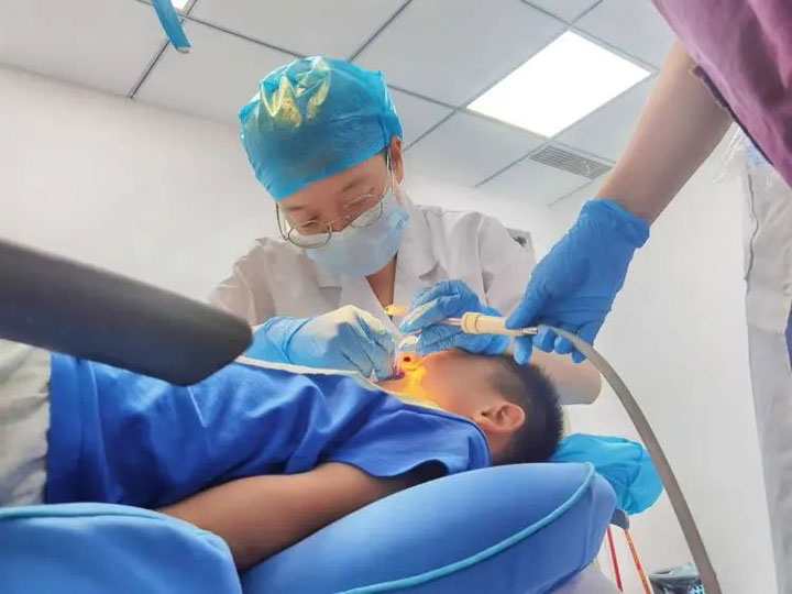 2、隔湿、擦干:口腔科医生为其使用棉纱卷隔湿后,用棉球擦干牙面。