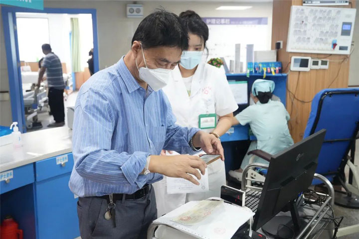 为了在患者出院的"最后一公里"上改善病人及家属的感受,淮南东方医院集团不断探索优化,开展特殊患者床边结算服务。“不用往返奔波、排队结算,在病房护士站这边就能办理出院,真是方便了我们这样行动不便的病人。”9月13日,在东方总院肿瘤科护士站处,患者杨先生体验到了这项“极速”服务——仅仅花费了三分钟的时间,便将出院手续办妥,这项“床边结算”服务让他赞叹不已。