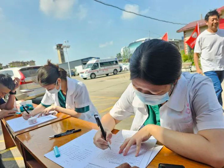 当日上午一早谢桥医院院长姜克星、书记江银格带领献血人员来到献血活动地点,向献血人员表示关心,引导大家完成填表、化验等准备工作,并叮嘱工作人员一定要做好后勤保障工作。大家积极配合血站工作人员,从登记信息、到化验检查、排队抽血,整个献血现场井然有序,现场气氛温馨有爱。