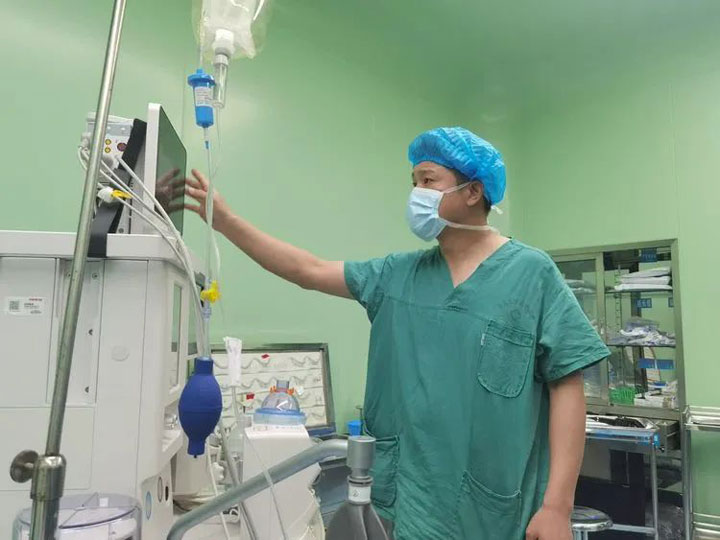 “刘院长采用的‘双腔支气管插管'技术。通过准确定位需要封堵的支气管开口,让患者原本膨胀的患侧肺最大限度萎缩,不再遮挡手术视野,最大程度为术者提供良好的手术视野和操作空间。由于是单侧肺供氧进行气体交换,患者的正常生理状态、内环境都会受到最大的干扰和改变,所以麻醉深度和风险都是很大的考验,面对复杂手术,麻醉师和术者全流程的配合对患者的生命安全至关重要。”广济医院麻醉科主任卜美林说。
