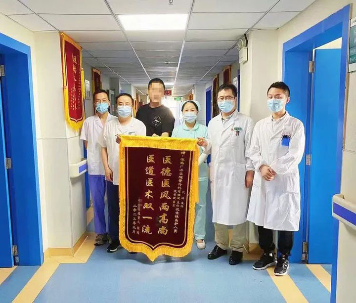 经过近3个小时的等待,在三位院长和全体医护人员的共同努力下,食道肿瘤被顺利切除,吴师傅已然迈过重生之门。在广济医院外科团队精心的术后管理下,他很快康复出院。“手术很顺利,现在我父亲已经恢复正常饮食了,非常感谢广济医院为我们请来总院专家,不用自己东奔西走,专家来家门口医院为我们手术,二级医院享受到三级医院的技术,让老百姓看病省心又省钱。这面锦旗是全家人的心意,谢谢你们。”家属说。