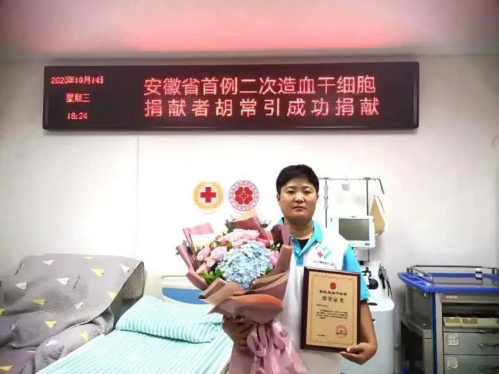 胡常引是淮南东方医院妇产科的一名助产士,也是全省首位两次造血干细胞捐献者。2012年,她忍受过敏反应,历经9小时的全国最长采集时间,为一位年轻妈妈捐献了造血干细胞;2020年,她再次完成捐献,期间因过敏反应4天未吃未喝,靠输液维持。胡常引先后荣获“中国好人”“安徽好人”“感动江淮优秀志愿服务典型”等称号。