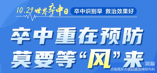 2023年10月29日是第18个“世界卒中日”,今年的宣传主题是“卒中识别早,救治效果好”;宣传口号是“卒中:重在预防”。旨在呼吁大家重视脑卒中的预防。