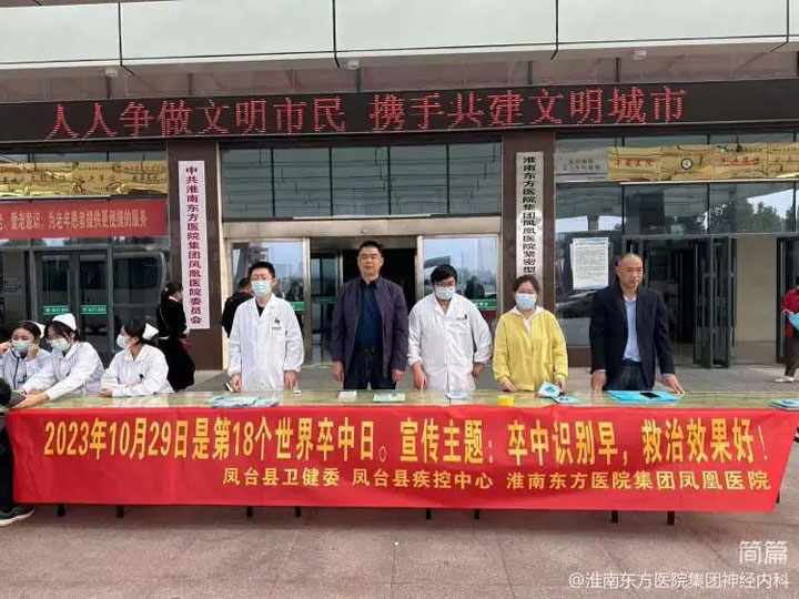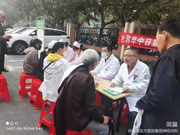 为进一步提升市民对脑卒中危险因素的认知程度,呼吁全社会关注卒中防治,宣传和倡导健康生活方式,实现脑卒中的早防、早诊、早治。在今年的卒中日来临之际,淮南东方医院集团神经内科质控中心院长朱高春号召集团各家分院神经内科前后开展了卒中宣传周系列义诊宣教活动。