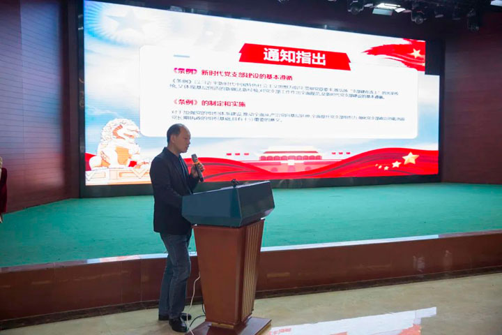 培训主要围绕《中国共产党支部工作条例(试行)》展开。陆宝书记从条例总则、组织设置、基本任务、工作机制、组织生活、党支部委员会建设、领导和保障等方面对条例进行了深入细致的解读,并结合医院工作实例加以阐释,让参训人员能够更深刻地领会《条例》精神。