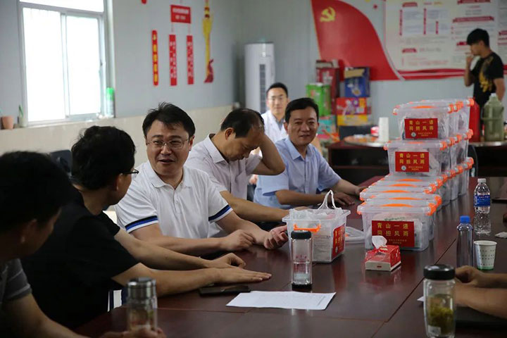 7月27日下午,淮南东方医院集团总经理江永强、工会主席陆宝、凤凰医院院长钱志刚等一行,前往位于张王村村部的毛集区防汛指挥部,看望慰问驻点防汛抗洪一线人员,并代表淮南东方医院集团为防汛工作者送上50箱防暑防虫防蛇集成药箱。毛集区防汛指挥部总指挥长、区工委书记、区人大主任胡林娜,防汛指挥部副指挥长、区工委副书记、区政协主任许兵,区管委主任助理曾伟,区卫计局局长梁雪梅等领导对江永强总经理一行的到来表示热烈的欢迎和诚挚的感谢。