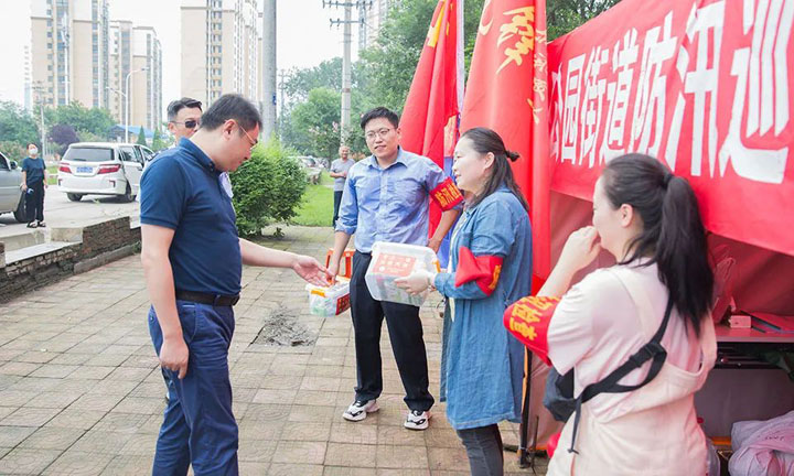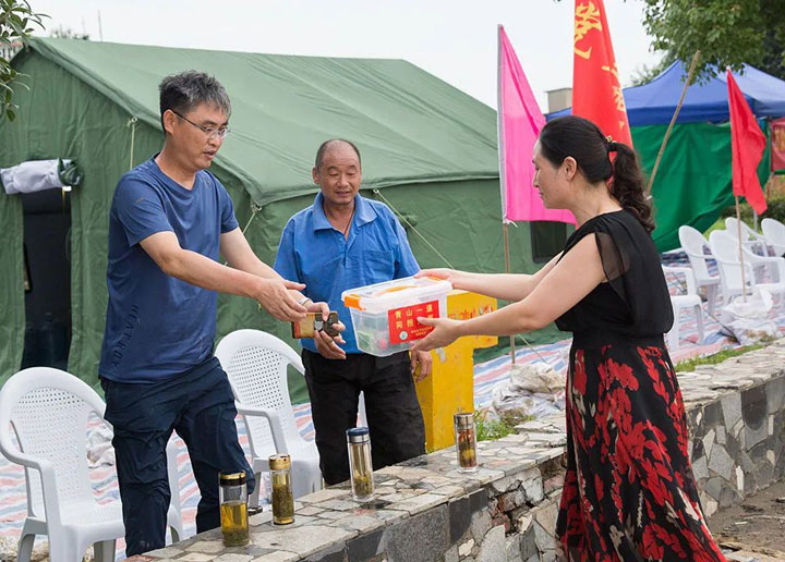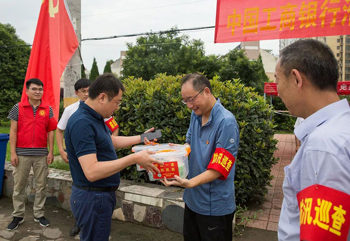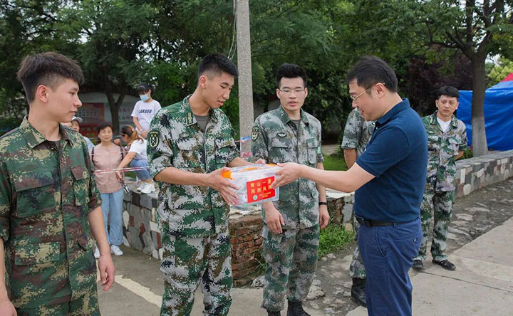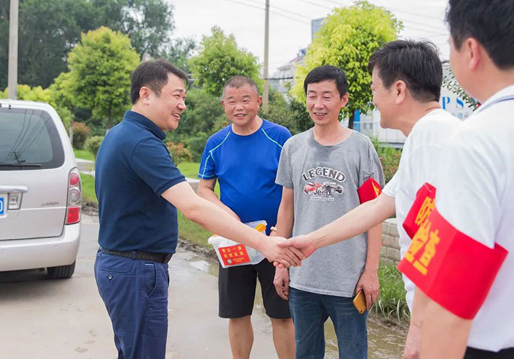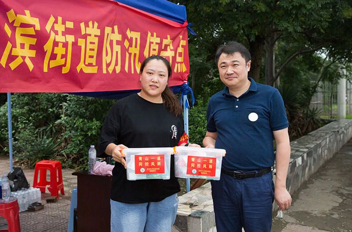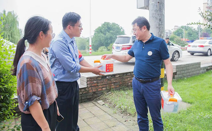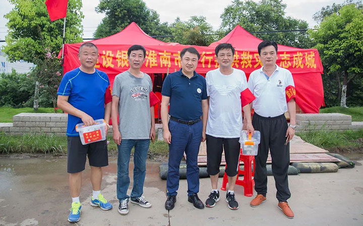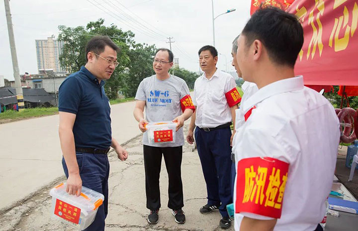 江永强总经理一行沿着淮河大坝,将准备的集成药品箱一一送到各站点防汛一线同志们手中,药箱里有蛇药片,风油精,藿香正气液,氟哌酸,酒精,碘伏,棉球等,正适用于户外防汛值守的同志们。江总关切地询问了值守、汛情等情况,对连续奋战在大坝上24小时值守的同志们深感敬佩,并对这些坚守岗位、保卫家园的值守人员表示衷心地感谢。
