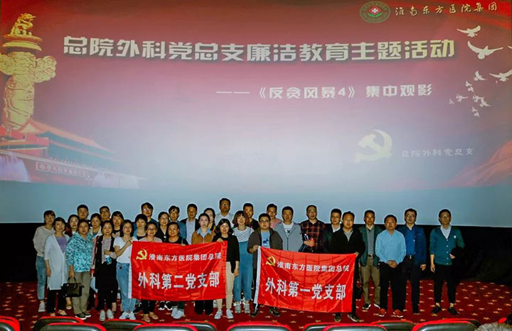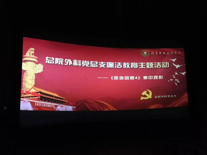 为深入学习贯彻党的十九大精神,积极响应国家扫黑除恶专项斗争,弘扬清正廉洁的价值观,加强纪律教育,全面推进党的政治建设、思想建设、组织建设、作风建设、纪律建设。总院外一、外二党支部开展“我的电影党课”主题党日活动,观看电影《反贪风暴4》。近100名党员同志参加了此次活动。
