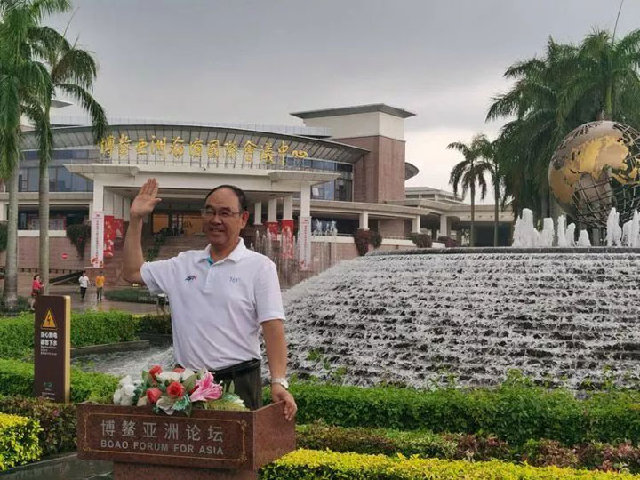 今天是10月14号,出游的第四天,辛苦忙碌的左院长特意赶来和我们合影留念,并送我们出游。今天的行程是:博鳌亚洲论坛和玉带滩。