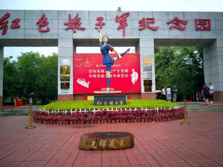 刚进纪念园,一位英姿飒爽的红色娘子军战士雕像迎面而来,她戴着红袖章,打着绑腿,右手握拳高高举起,目光坚定的望着前方。背景是习近平总书记重要讲话精神:崇尚英雄才会产生英雄,争做英雄才能英雄辈出!看得我们心潮澎湃,肃然起敬。大家纷纷向英雄致敬!