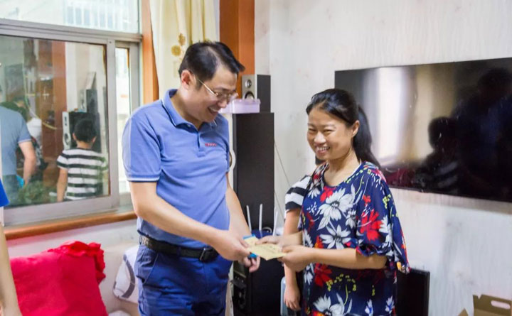 在黄道伦的家中,江永强总经理向姚娟承诺,今后姚娟来东方总院进行透析的费用会给予部分减免,并承诺今后为黄道伦妻儿的治疗提供力所能及的帮助。