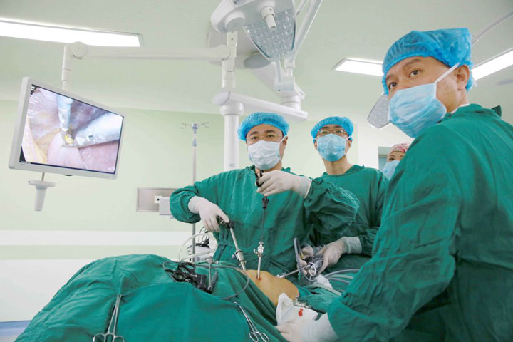目前中国临床处理胃癌患者以进展期胃癌为主,腹腔镜辅助全胃切除术和远端胃大部切除术是目前开展最多的两种术式。东方医院集团依托内镜诊疗中心平台优势,针对淮南老百姓展开胃镜筛查,逐步提高胃癌的筛查率,进而依托腔镜-内镜复合手术室优势,开展多种类型胃良、恶性肿瘤手术方式,诸如早期胃癌内镜粘膜下切除手术(ESD)、胃部粘膜下肿瘤内镜切除手术(ESE),腹腔镜辅助下胃癌根治手术、胃镜联合腹腔镜行胃部肿瘤切除手术等,培育出了一支胃恶性肿瘤诊疗创新优势队伍,提高了淮南胃恶性肿瘤诊疗总体水平。